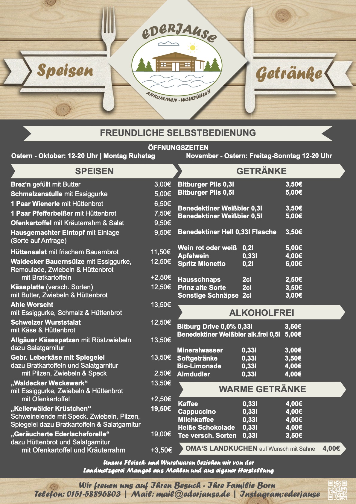 Öffnungszeiten Ostern-Oktober